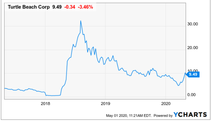 The company trades at a 138 million market cap with 2019 revenue of 234 million and a net profit of 17.9 million. The company got a big bump in revenues and stock price in the year 2018 after the popular game Fortnite started to gain traction, and with it, the demand for Turtle gamer headsets.