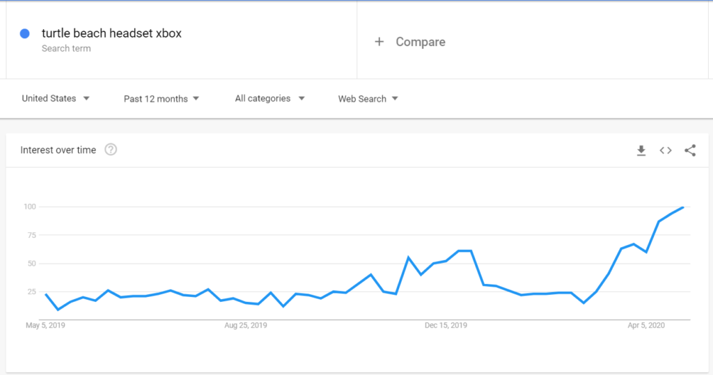 Although the stock went from $5 to $10 in the March recovery, we still believe it could be an interesting buy before earnings, which is on May 7. We believe their earnings will beat expectations. The main reason for this thesis is the fact that the demand for the company’s headsets (both Xbox and PS4) is exploding according to google trends search data