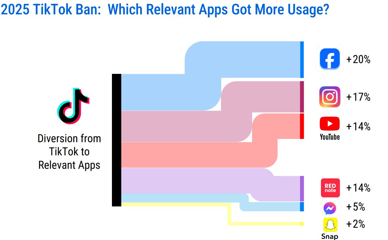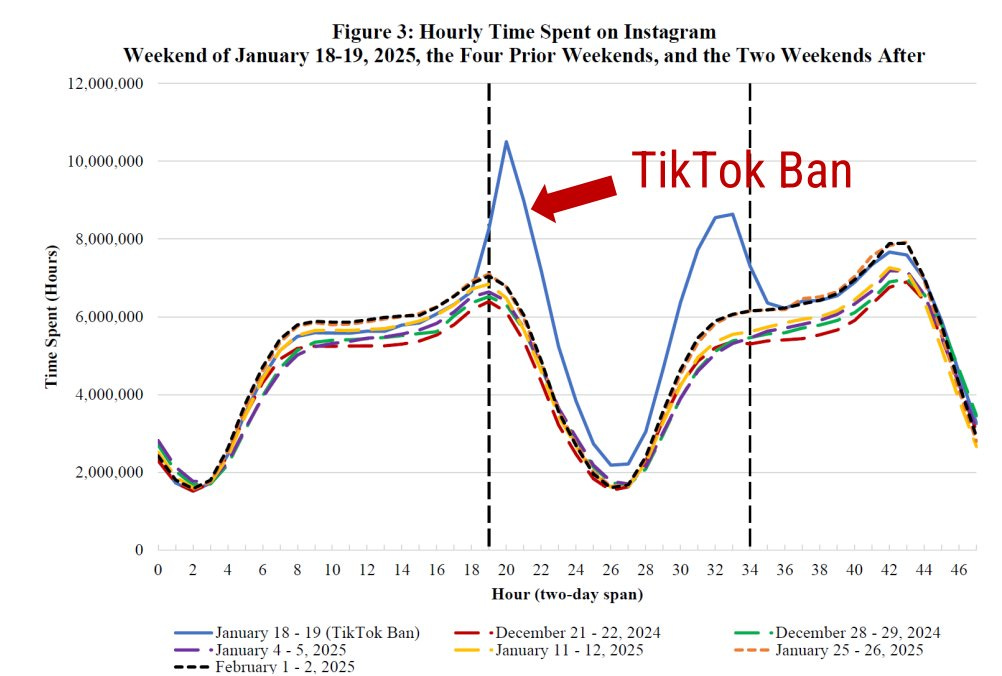 Then, there were two more slides showing how Meta would truly be the purest benefactor if TikTok were banned in the U.S. For the few hours that TikTok went down in the U.S. because of the ban, Meta saw a significant uptick for its apps, especially Facebook and Instagram, which can be seen in these two slides Meta put out: