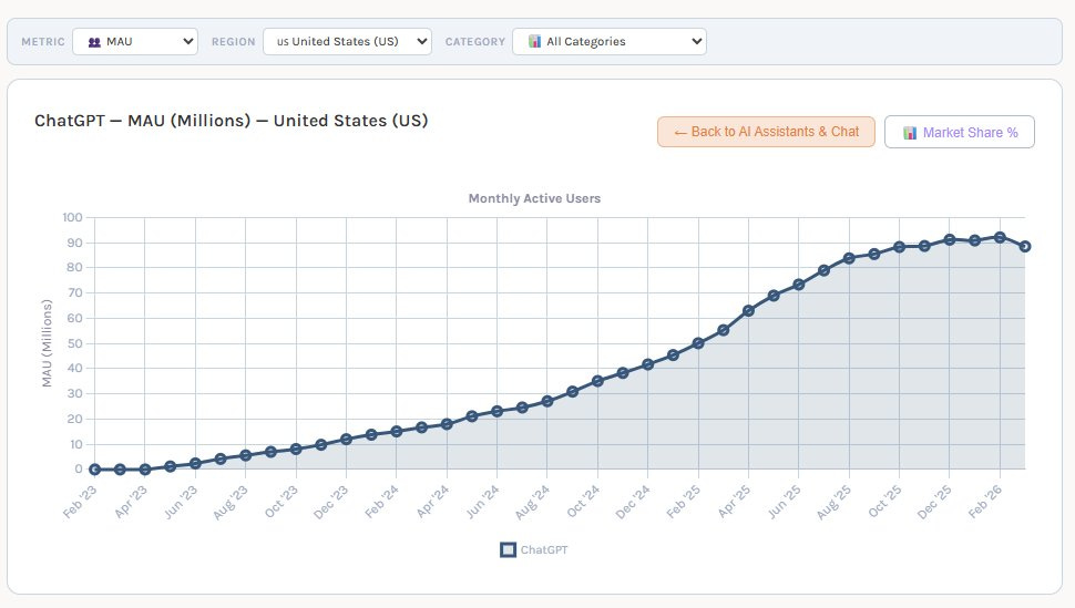 To add to this, SensorTower data now show that ChatGPT’s monthly active users in the US have started to fall slightly, adding to the headwinds.